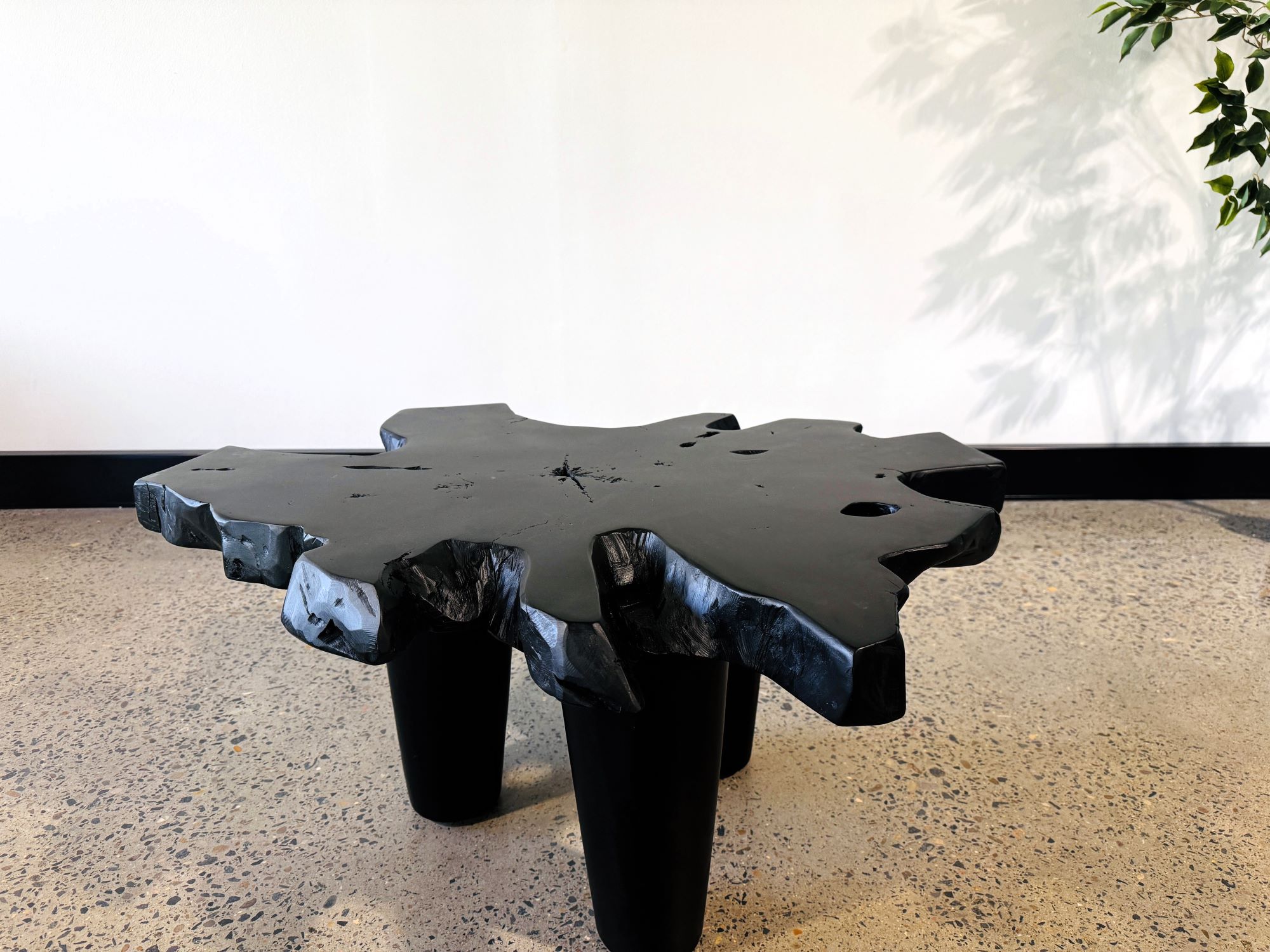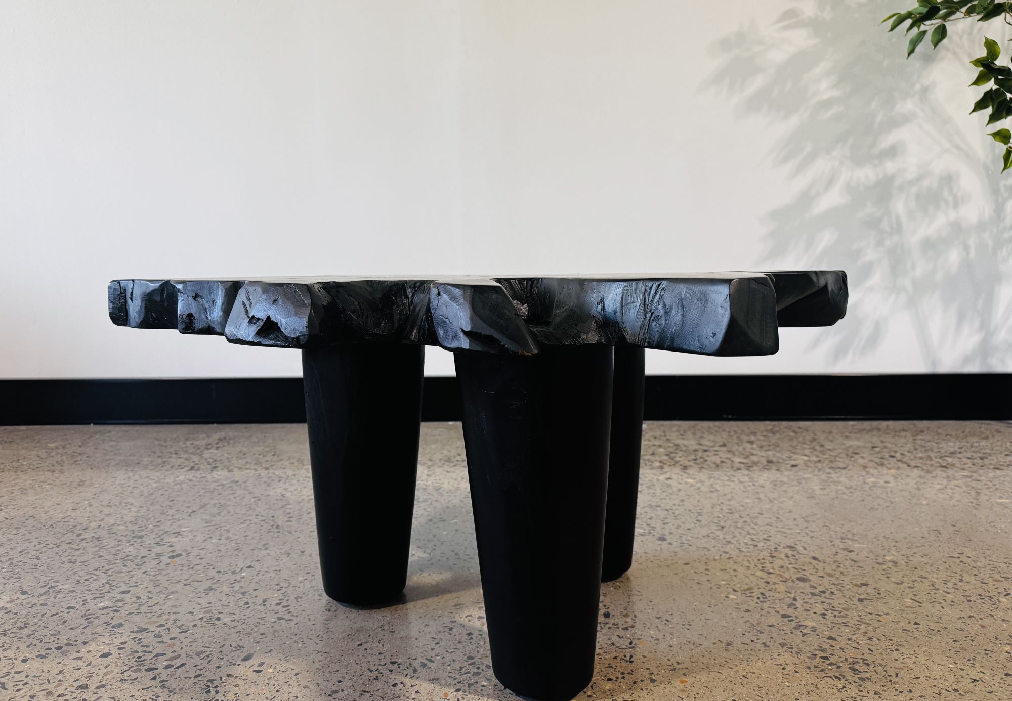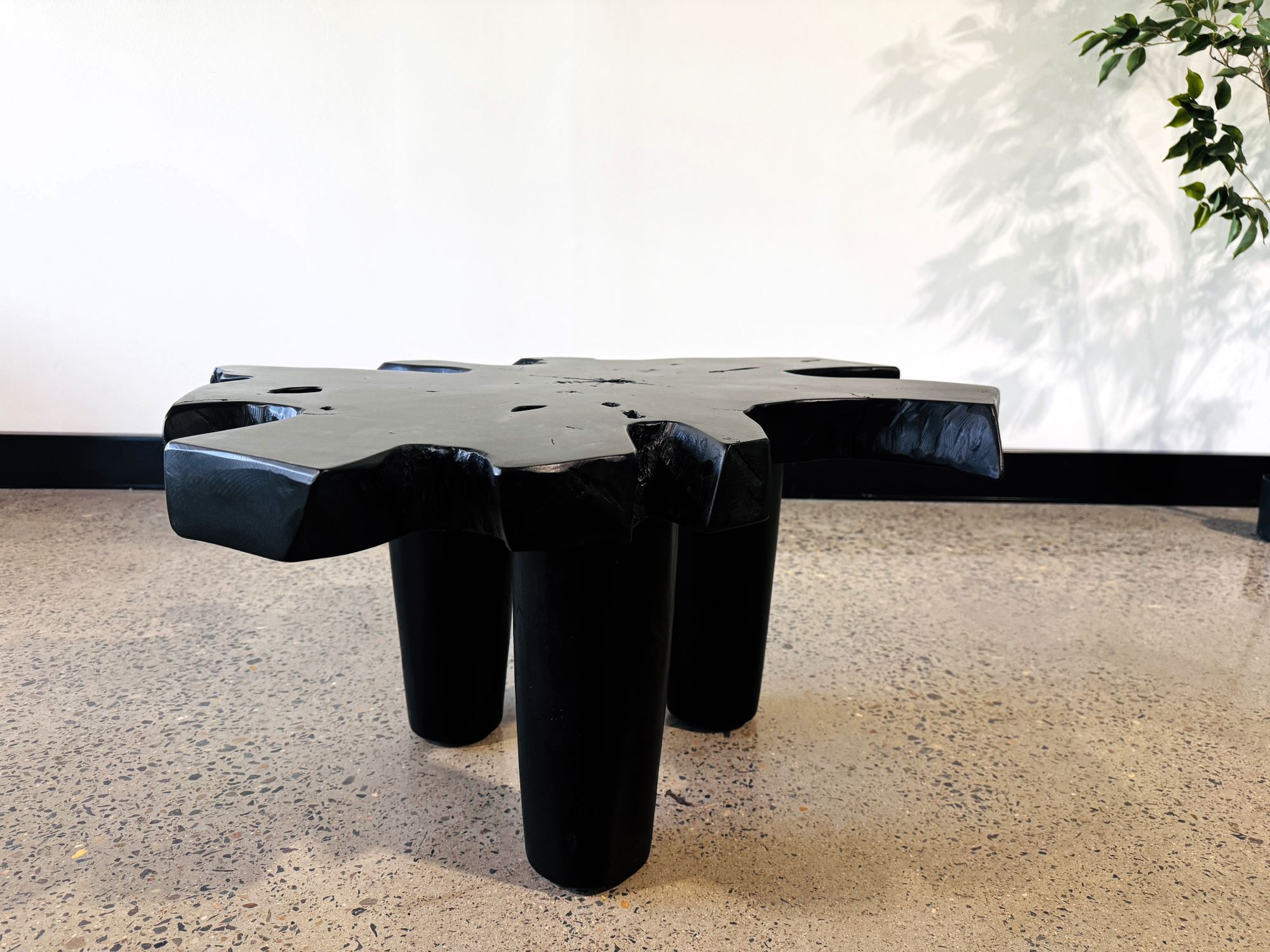 Introducing our Artisan coffee table, it’s Organic-shaped coffee table made of live edge teak wood in Matt Black