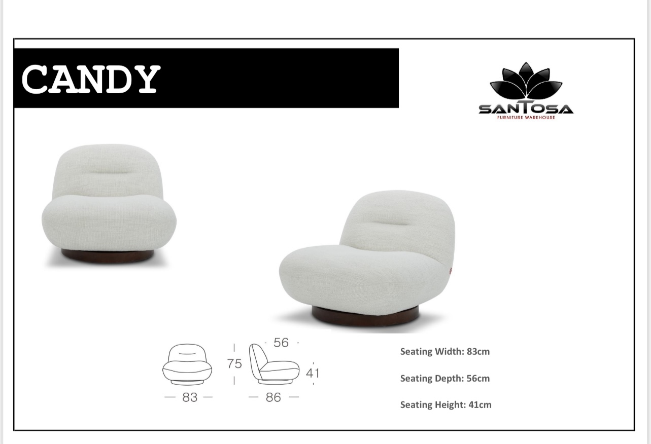 Introducing our Candy swivel chair, a fashion-forward accent chair with modern charm. Spin into your interior with