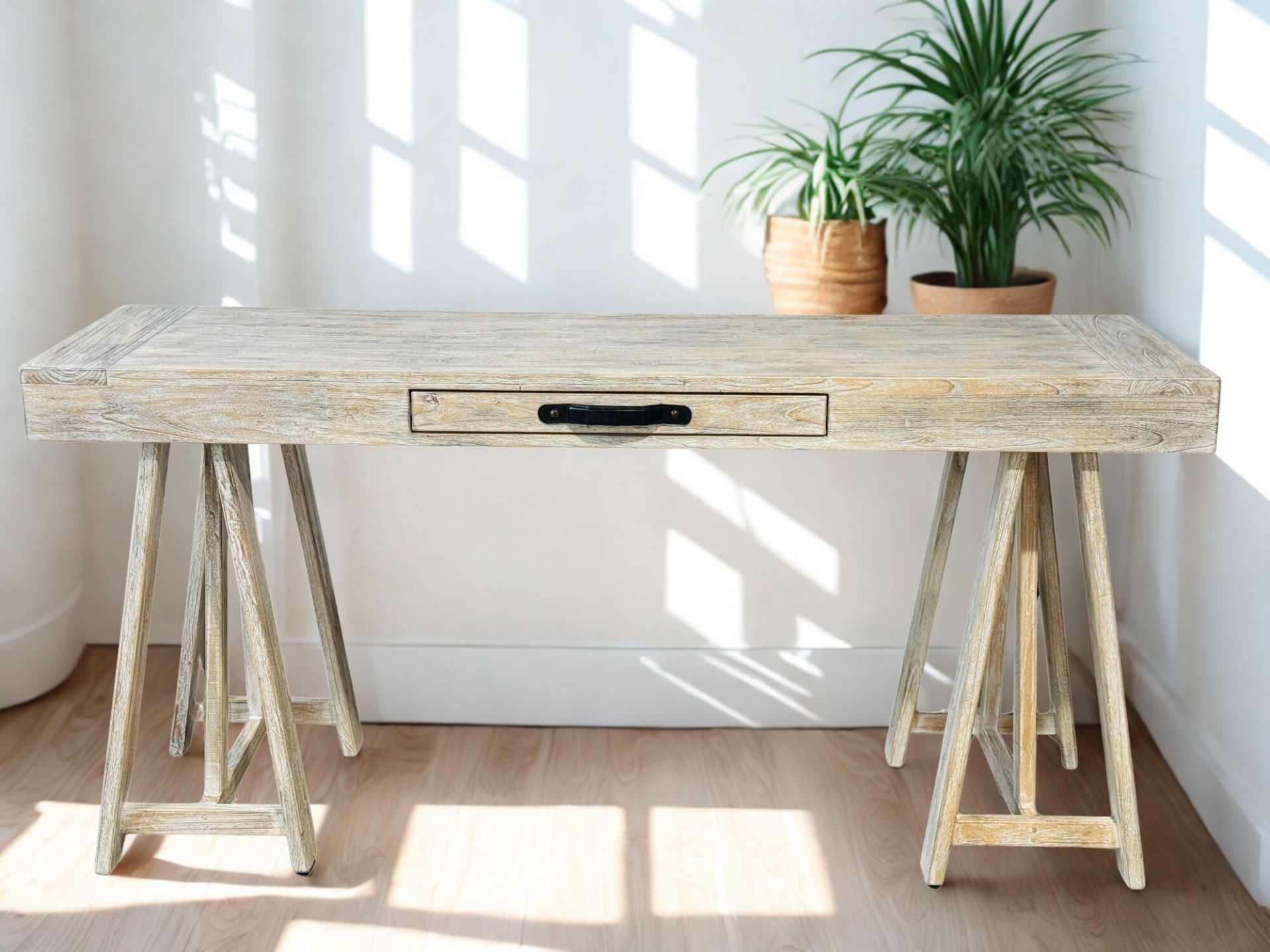 Our Hampton Console/Desk will fit in anywhere around the home, from styling your hallway to use as a desk in the office or bedroom. The trestle leg design is a classic look which will accommodate many aesthetics, and also has a slim drawer for notes or other storage needs.