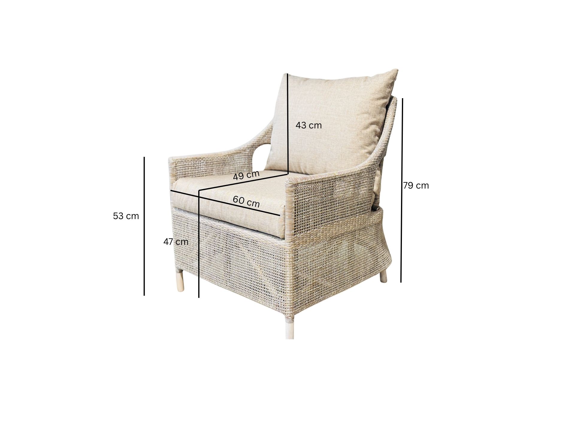 Handcrafted with sustainable Rattan & Peel & cane frame, oatmeal color cushions