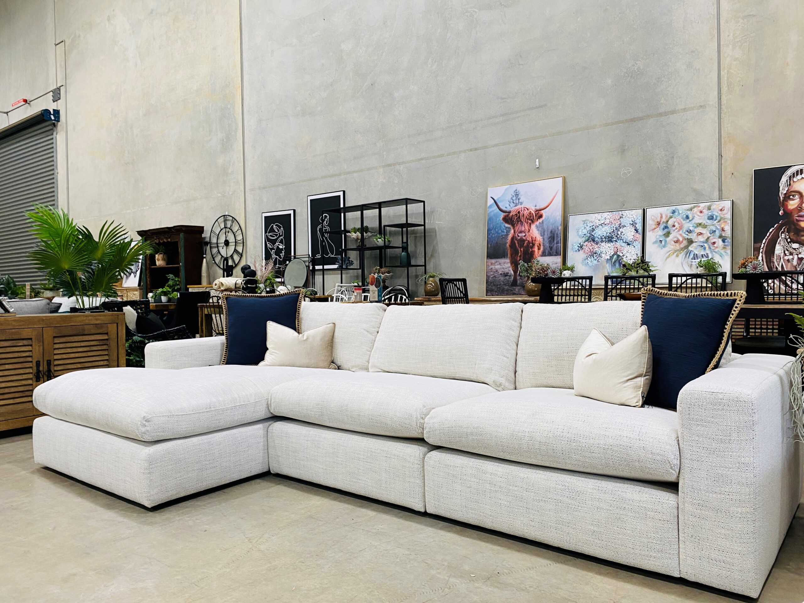 A modern square-arm design, its solid timber frame with premium suspension seating and fiber filled cushions complete this large scale sofa.