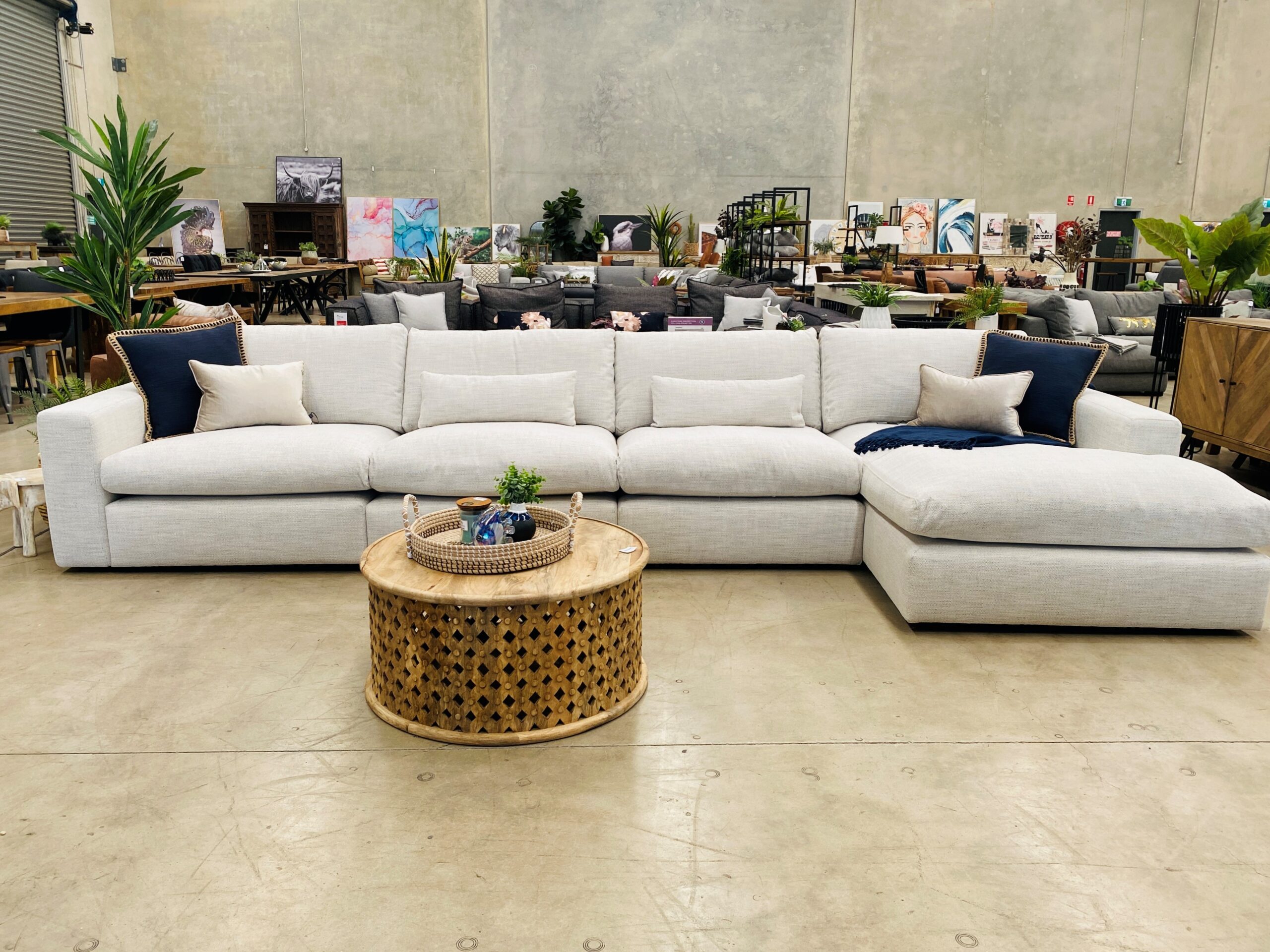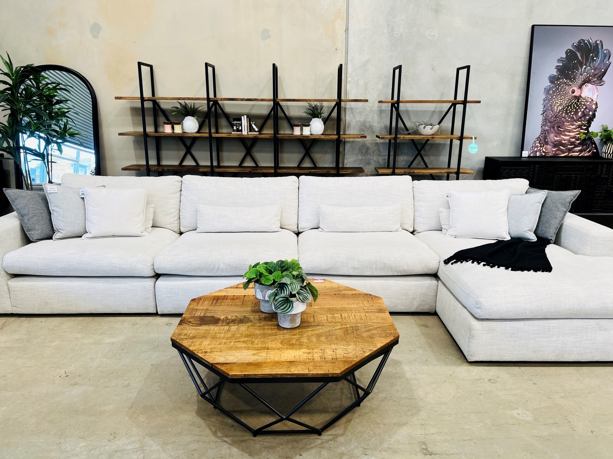 A modern square-arm design, its solid timber frame with premium suspension seating and fiber filled cushions complete this large scale sofa.