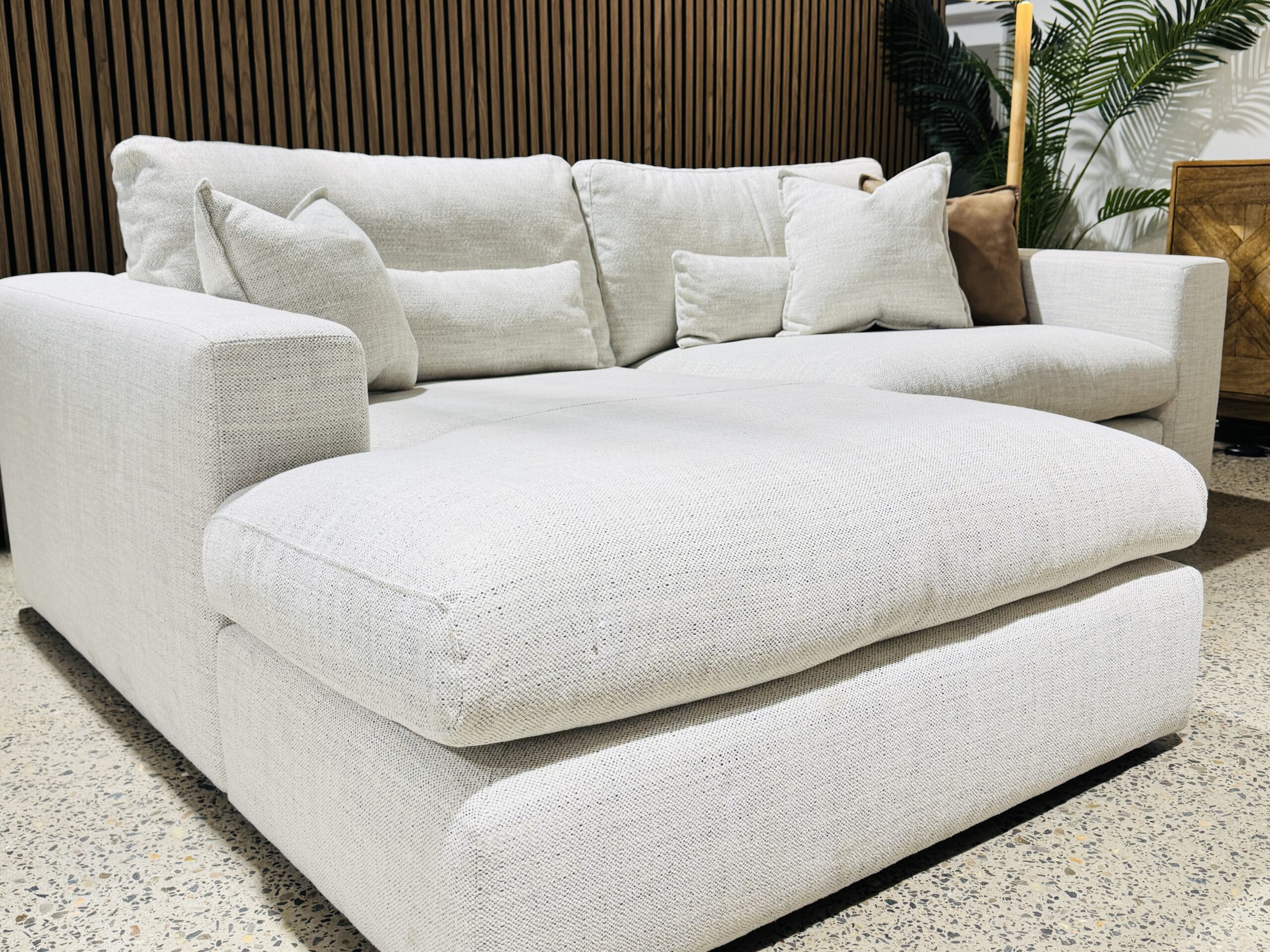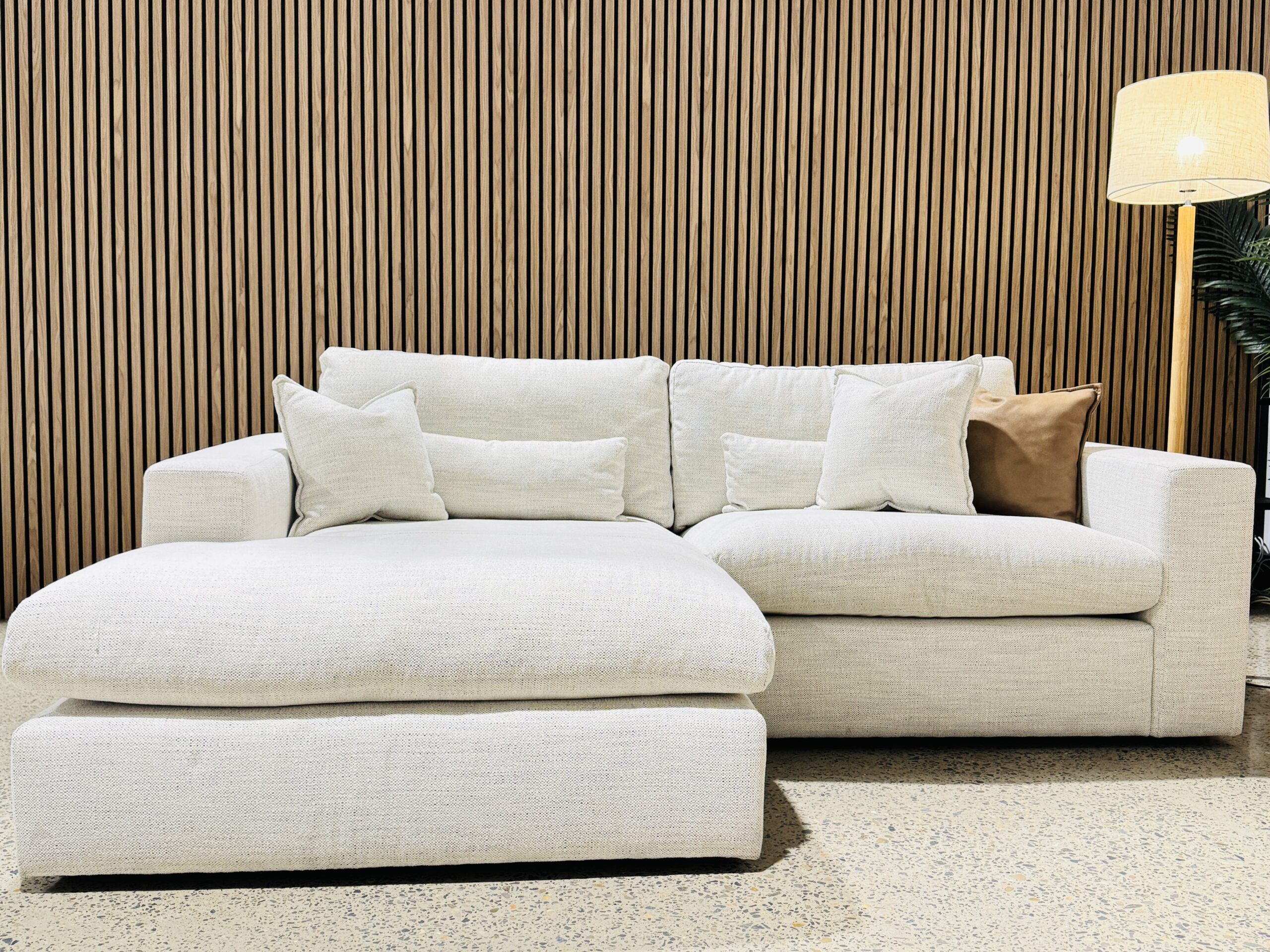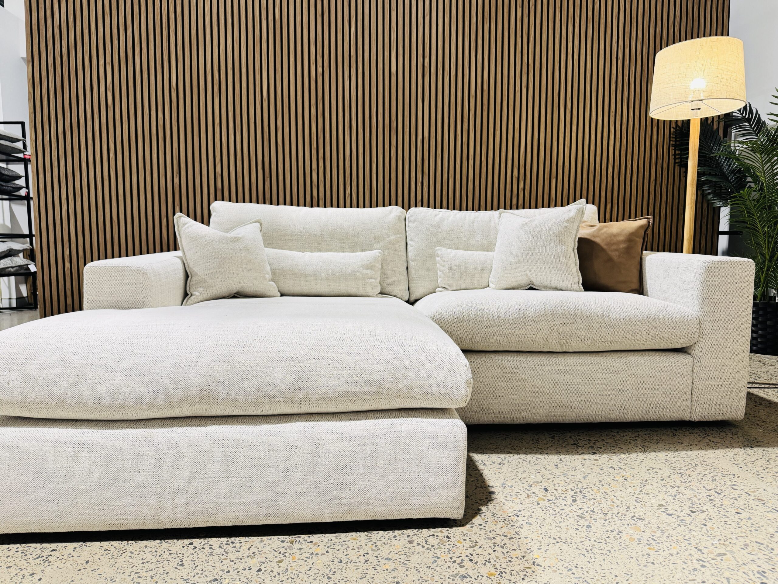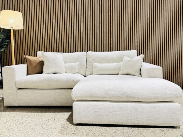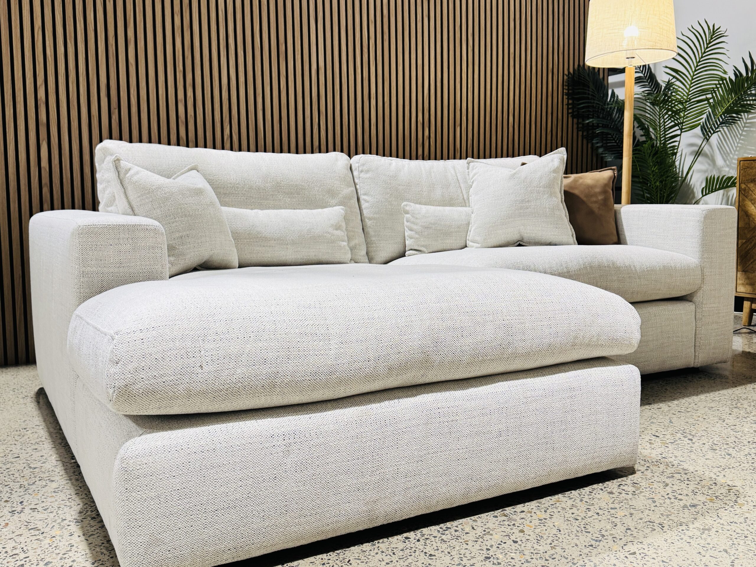 A modern square-arm design, its solid timber frame with premium suspension seating and fiber filled cushions complete this large scale sofa.