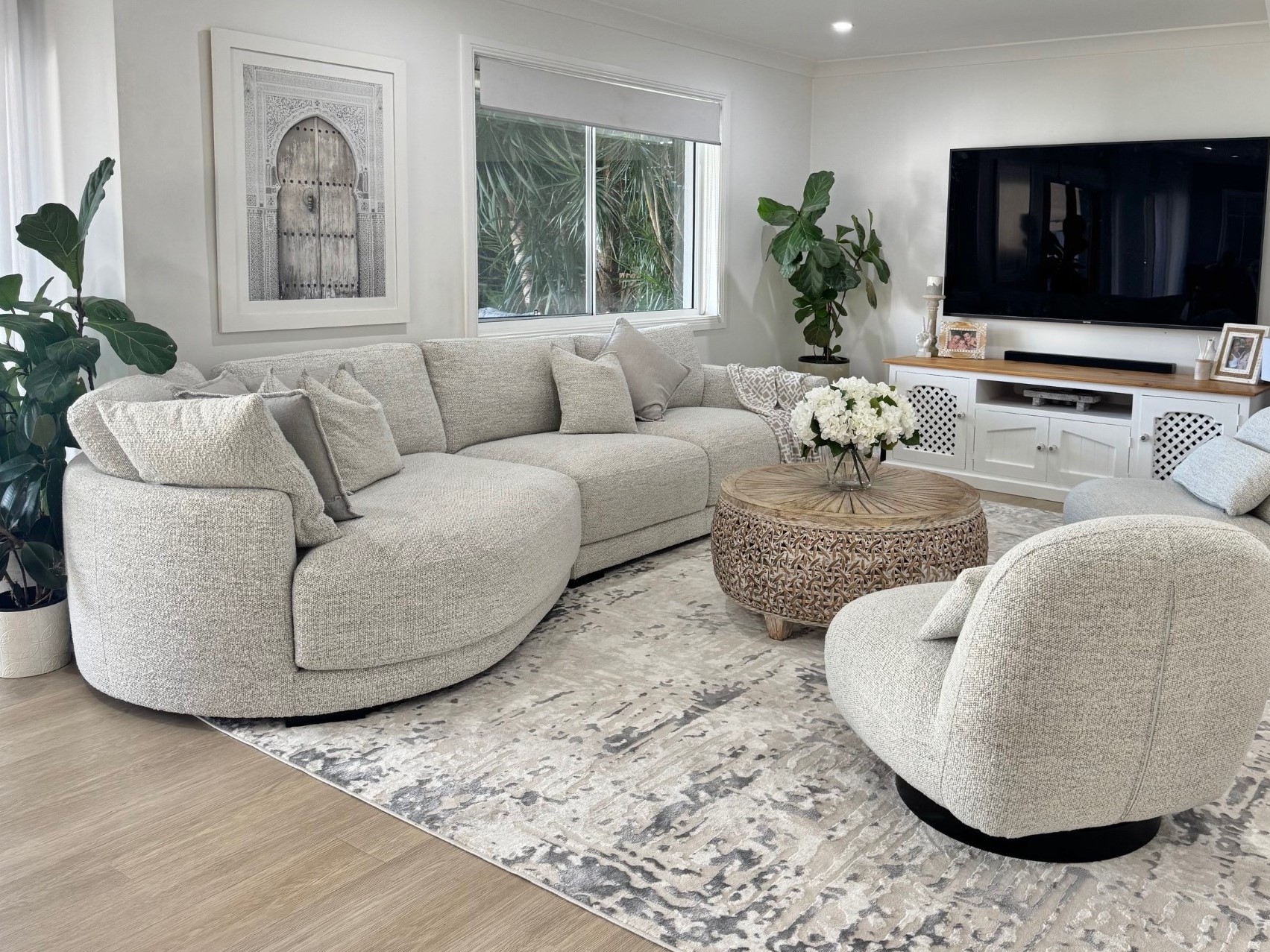 The curved form of our Roxy lounge setting will create a bespoke and fresh look in your living room space. The modern