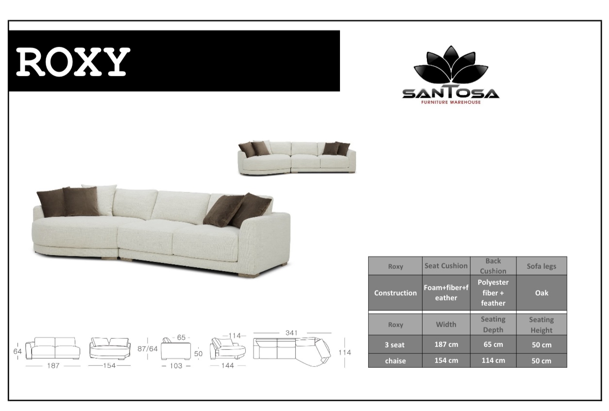 The curved form of our Roxy lounge setting will create a bespoke and fresh look in your living room space. The modern open design of this lounge will give an abundance of seating, making it an entertainer’s dream lounge.The individual pocket coil spring system made this Roxy lounge with premium base suspension system, together with solid oak legs. Loose back cushions easy to maintain and keep the lounge in shape.