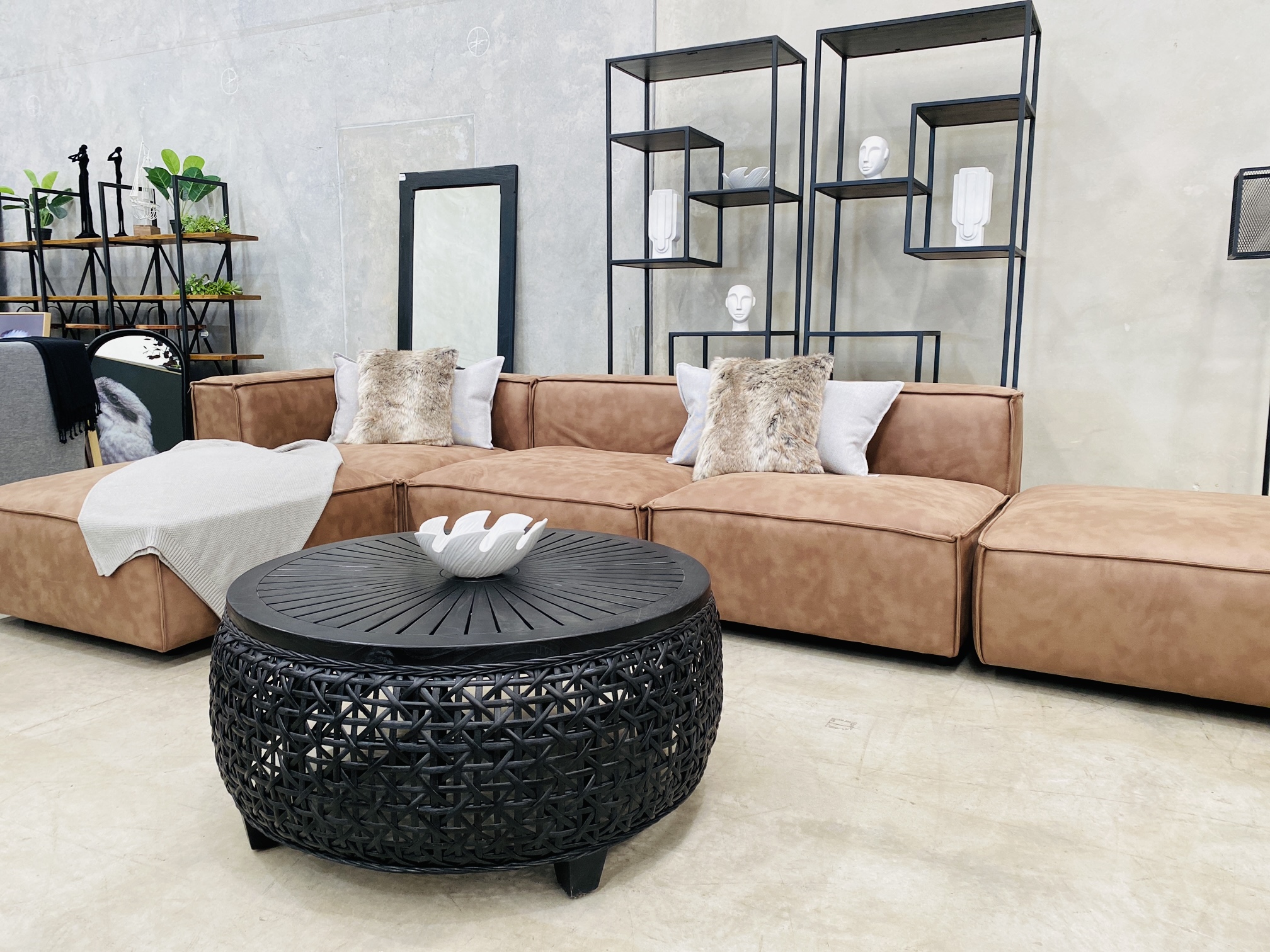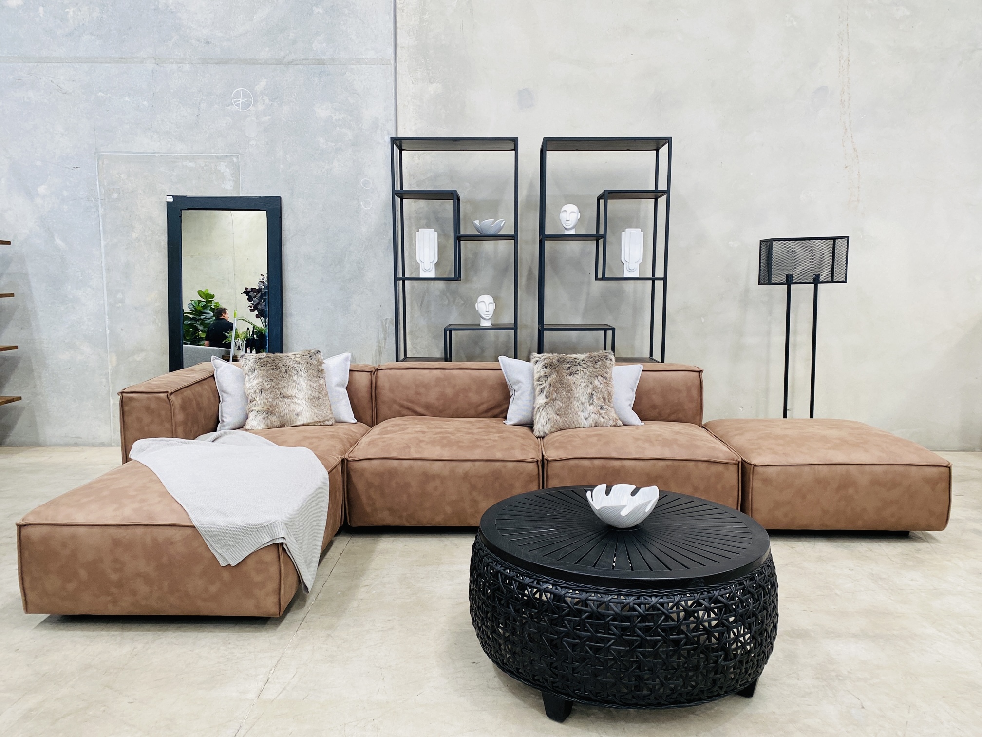 The toffee fabric covered on this lounge, which is from our core range fabric, has a leather look texture, very easy to maintain. Soft hand touch feel.
